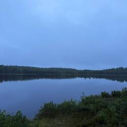 Aufstehen und von Hühnern begrüsst werden. Ab in den Muddus Nationalpark. Dort von Insekten verfolgt zum Muddusagahtjaldak (Wasserfall) und die Aussicht wegen den vielen Mücken nicht geniessenLeer más