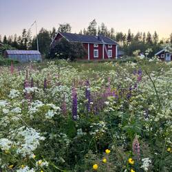 Viele viele viele Seen, noch mehr Lupinen. Alle Häuser sind rot-weiss. In jedem zweiten wollen wir leben.