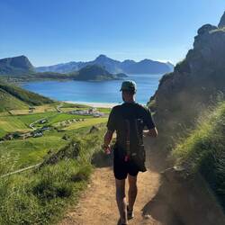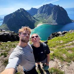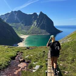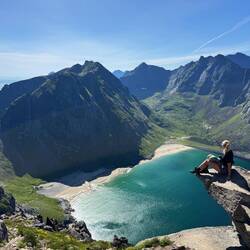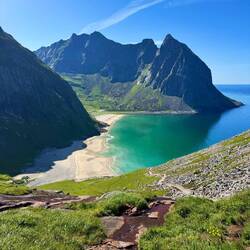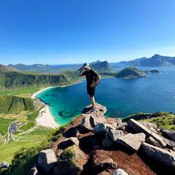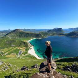 Wanderung am Hauklandstrand zum Uttakleiv Strand, dann auf den Mannen hoch mit Top Aussicht auf beide Strände. Etwas am Strand gechillt und dann einen schönen Parkplatz gesucht.