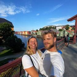 Wir kamen von Schweden, gingen die Gasflaschen ausfüllen und anschliessend nach Trondheim. Dort eine Stunde durch die Stadt gelaufen. Beide finden die Stadt sehr schön!