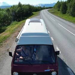 Spät vom Nordkapp aufgestanden. Ab zur nächsten Raststätte. Da sehr spät gefrühstückt und dann ab gen Süden.
