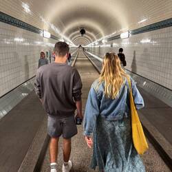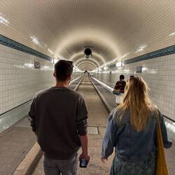 Er zeigte uns seine Wohnung und Hamburg. Mit einem Bier durch den alten Elbtunnel und mit der Fähre zur Philharmonie.