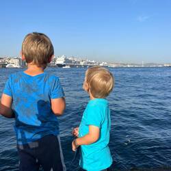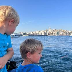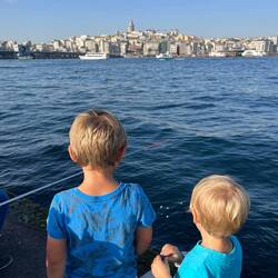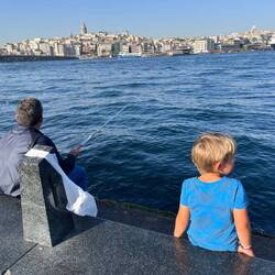 Anschließend haben wir uns ans Ufer Bosporus-Goldenes Horn gesetzt, den Schiffen, den Anglern sowie dem Treiben zugesehen und auf Papa gewartet.