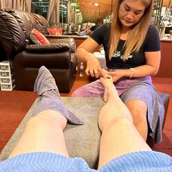 Danach sind wir zurück ins Hotel und Papa ist noch etwas rausgegangen während sich die Kinder noch ausgetobt haben und ich sie ins Bett gebracht habe. Danach war noch Mama-Zeit angesagt und ich bin noch etwas durch die Straßen gelaufen und war bei der Massage. Das schöne an Thailand ist, dass man sich als Frau auch im Dunkeln ziemlich sicher fühlt, was abends noch etwas alleine rausgehen entspannt macht.Læs mere