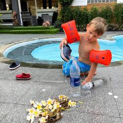 Papa hat versucht Otto die ersten Schwimmbewegungen beizubringen, aber Otto lässt sich leicht ablenken und seine Ausdauer ist dafür gerade nicht so groß.