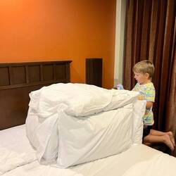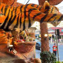 Danach sind wir heute etwas früher los und haben uns vor dem Abendessen noch Getränke in der „Tiger-Bar“ bei uns ums Eck gegönnt. Die Decke und die Wände der Bar sind eindrucksvoll aus riesigen Tigern und auch einem Elefantenkopf. Im Anschluss waren wir in einer Art Garküche sehr gut essen und dann ging es zurück ins Hotelzimmer, da die Kinder ohne Mittagsschlaf schon ziemlich müde waren. Im Zimmer wurde dann noch getobt, die Kuscheltiere in Tüten durch die Gegend geschleudert und eine Höhle aus Kopfkissen für die Kuscheltiere gebaut. Danach hieß es ab ins Bett und dann hatte Mama noch ihre Ausgehzeit. Ein schöner Urlaubstag geht zu Ende.Read more