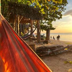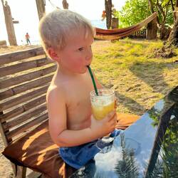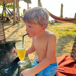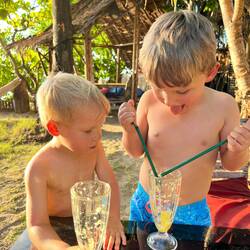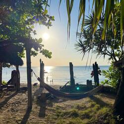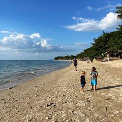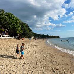Wir sind dann den Strand („Klong Khong Beach“) in Richtung Süden gelaufen und obwohl es schon circa 16.30 Uhr war, hat die Sonne noch ganz schön heruntergebrannt. Wir sind dann eingekehrt beiLes mer