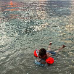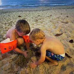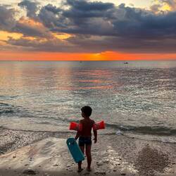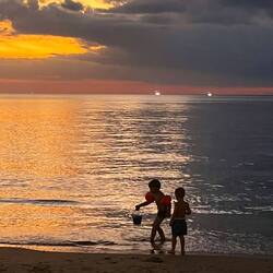 Zum Sonnenuntergang sind wir noch zum Strand - die Kinder haben gespielt und wir konnten wieder beobachten wie wunderschön der rote Ball alias Sonne im Meer verschwand.