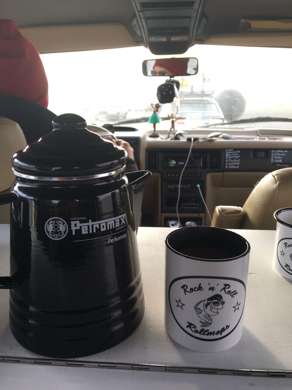 Schön im Auto um 5:00 Uhr morgens einen Kaffee zum Wachwerden gekocht und das alles direkt am Nordkapp. Wie irre ist das denn bitte!