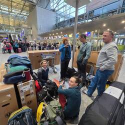 Kurz vor vier Ankunft in Frankfurt. Erst mal Wagenburg gebaut.