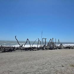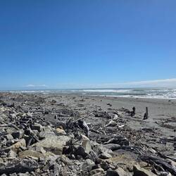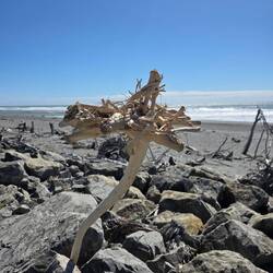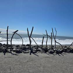 Wieder so ein klassischer Überführungstag. Diesmal über Hokitika und Ross zum Fox Glacier. Unterwegs Strände, Museum, Strandkunst und einiges mehr.