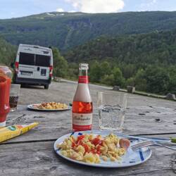 Da wir uns die Kirche gerne morgen von innen anschauen möchten, in der Nähe einen Platz gesucht, wo WohMos erlaubt sind. Haben Tische und Bänke und können noch den Kongevegen laufen (heute aberLæs mere