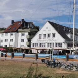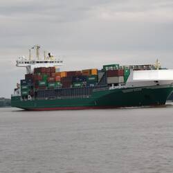 Einfahrende Schiffe werden begrüßt. Das nächste Containerschiff ist auf der Anfahrt