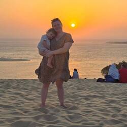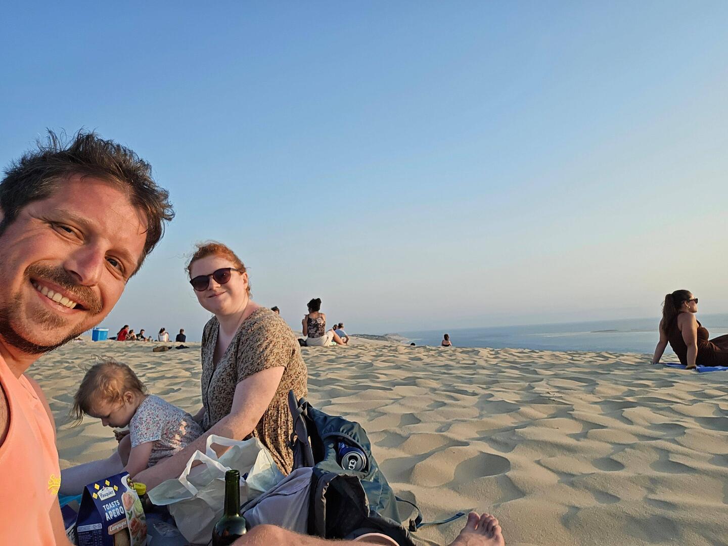 Nach einem schönen Tag am Strand bei Ebbe und einem Mittagsschlaf unter Sonnenschirmen, wurde ein abendliches Picknick auf der Dune du Pilar (der grosten Wanderdüne Europas) gemacht. Bei Wurst,Les mer