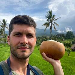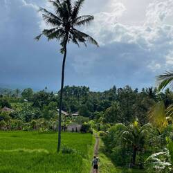 Le lendemain matin, même refrain... sauf qu'il faut faire un check out... J’avais prévu de séhourner dans un beau resort dans 2j mais le okanning ne colle pas. Du coup pour la St Valentin je décale en avance la résa (Jessie commence à s’habituer aux surprises, va falloir que je freine…😈) à aujourd'hui... ♥️ On part alors sur le scooter à travers des sentiers au milieu de la nature avec des chemins compliqués… jusqu’en haut de la montagne ⛰️ Ce ride était certainement le plus beau du séjour, on s’est régalés à explorer l’île dans ce coin. Nous arrivons donc juste avant l’orage sur les coups de 14h30 à la plantation de café de Munduk…