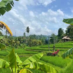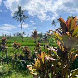 Nous venons donc d’arriver dans un nouvel hébergement fantastique 🏨 Le "WaVi Eco Cottage" situé au milieu des rizières, entouré d'un petit jardin tropical 🪴