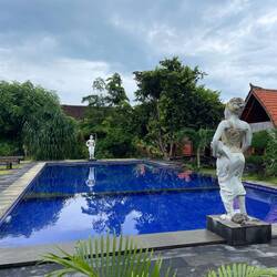 Après être arrivés dans la soirée assez tard, retour en famille d'accueil! 🏠 L'Apel Homestay a de très bonnes critiques, mais se trouve sur une route principale: c'est comme dormir sur l'autoroute, le standing change drastiquement 😅. Le lendemain nous préférons partir dans un endroit calme et recherchons autre chose pour les deux prochaines nuits. Avant de partir, l'hôte nous propose une excursion sur l’île de Menjangan (snorkeling et repas inclus) à un "prix imbattable" 😏 on prend le temps de réfléchir dans un premier temps afin de comparer les autres offres.