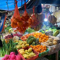In einem Café mit Internet erledigen wir ein paar Dinge für die Arbeit und dann geht es ab auf den Roller in Richtung andere Küste 🛵 Erstmal gibt es noch einen Stopp in der einzigen „Stadt“ Coron Town bei einem der größeren Supermärkte 🛒 Wir müssen dort mal wieder feststellen, wie entsetzlich ungesund dieses Land ist und kaufen quasi alles was vegetarisch und nicht mit 50% Zuckerzusatz ist 🫢 Frustriert machen wir Halt an einem lokalen Markt, um Früchte und ein wenig Gemüse zu kaufen 🛒 Leider haben wir nicht immer einen Kühlschrank (quasi fast nie) und können daher nicht viel Frisches mit uns führen. Was uns zudem erstaunt ist, dass alles teurer als auf Bali ist 🫤