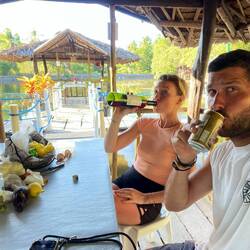 A la pause du midi, nous nous attablons involontairement avec une famille très sympathique sur la plage, qui nous propose à manger et à boire sans plus tarder 🍷 Leurs plats typiques philippins spécialement cuisinés sont super savoureux et es gens-là sont extrêmement hospitaliers 🤗 Ils nous invitent même le lendemain à aller les voir dans leur restaurant 👋