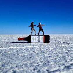 Danach fahren wir in die weltbekannten Salt Flats, eine 11'000 km2 grosse topfebene Salzwüste, die so sureal ist, dass es schwer zu beschreiben ist. Es ist das Ende der Regenzeit und immer wieder finden wir riesige Pfützen aus 1-2cm tiefem spiegelglattem Wasser, die ideal sind für Spiegelfotos. Wo es trocken ist, toben wir uns kreativ mit optischen Illusionen aus. Durch die komplett flache Landschaft fehlt die Tiefenwahrnehmung, was lustige Fotos ermöglicht.