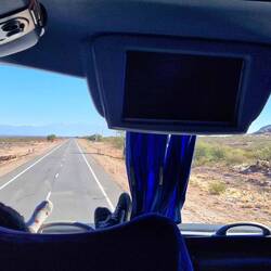 Nach einer erholsamen Nacht fährt um 09:50 bereits der nächste Bus mit Ziel Mendoza. Wir freuen uns auf eine gemütliche Tagfahrt von 8 Stunden und hoffen, um 18 Uhr anzukommen. Wir fahren wieder durch beeindruckende Wild West Landschaften auf pfeilgeraden Strassen durchs Niemandsland.