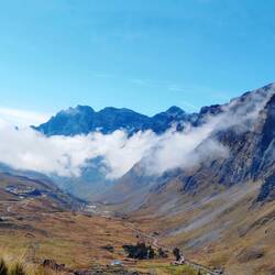 Und diese Strasse fahren wir heute mit einem Mountain Bike hinunter. Willy erklärt uns einige Regeln, kleidet uns komplett in Schutzausrüstung ein und dann geht es auf 4600m Höhe auch schon los. Die ersten Kilometer sind asphaltiert und perfekt dazu geeignet, sich ans Fahrrad zu gewöhnen. Im zweiten Teil erleben wir die Death Road dann so, wie man sie von den Bildern her kennt. Wir sind beide etwas nervös und fahren konzentriert über loses Geröll, durch kleinere Bäche und rutschigen Schlamm. Ab und an lösen wir den Blick vom Boden vor uns um die Landschaft zu bewundern, bis uns bewusst wird, dass es 2m links von uns einfach senkrecht runtergeht. Wir fühlen uns bei Willy gut aufgehoben, denn er baut viele Stopps ein, wo er jeweils die Herausforderungen und Regeln für den kommenden Streckenabschnitt erklärt. Und wenn wir mal etwas sehr langsam fahren, macht er keinen Druck, sondern unterstützt das.