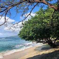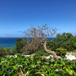 Nachdem ich alle Flüge gebucht hatte, wollte ich zum zweiten Mal auf die Suche bzw. auf den Weg zum Portici Strand machen. Natürlich mit Hilfe der App. Auch dieser Versuch scheiterte. Ich stand irgendwann vor einem verschlossenen Gartentor. Glücklicherweise ist der Grooms Beach gleich nebenan. Auf dem Weg dorthin hab ich noch einen kleinen Pfad mit einem Pfeil gesehen, s See um den stand: La Luna/Monkey Bar. Da hab ich mir gedacht, dass kommt mir bekannt vor. Ich bin dann dem Weg gefolgt, war dann auch an einem Strand, der aber nicht besonders groß war und auch kaum Platz zum Hinlegen bot. So bin ich doch wieder am Grooms Strand gelandet. Es war erst ein wenig unheimlich, da ich den ganzen Strand für mich hatte. Nach kurzer Zeit, war das komische Gefühl aber verflogen. Für ein paar Minuten legte ein Segel-Katamaran an und am anderen Ende kam noch ein Mädel an den Strand. Leider war das Meer heute sehr unruhig, so dass ich nicht schnorcheln konnte. Nach einer guten Stunde bin ich wieder Richtung Apartment gestartet. Hatte ja noch einen halbstündigen Spaziergang vor mir, dachte ich. Auf halber Strecke blieb ein Auto stehen und fragte mich, wo ich hin muss. Er hat mich mitgenommen und bis vor die Haustüre gefahren.