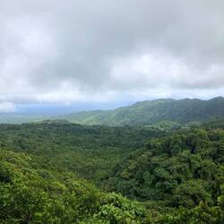 Die Rückfahrt ging dann quer über die Insel. Durch den Grand Etang Nationalpark. Eine traumhaft schöne Landschaft mit tollen Ausblicken. Leider konnte ich das nicht wirklich genießen. Durch das Rasen des Busfahrers war ich eher damit beschäftigt, mir nicht ständig meinen Kopf anzuhauen. Die Busse sind so eng, für Personen über 1,80 m eine Zumutung. Wahrscheinlich hab ich morgen ganz blaue Knie. Bequem sitzen ist nicht möglich. Ich hab mir heute auch noch gedacht, ich bin froh, dass ich auf Grenada keinen Standortwechsel habe. Das wäre mit dem großen Rucksack eine Katastrophe geworden.