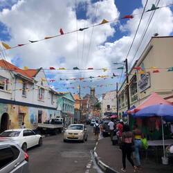 Gegen 10:00 Uhr bin ich los und der Bus nach St. George‘s kam auch gleich. In der Hauptstadt bin ich am Central Market ausgestiegen und wollte mir nochmal das Treiben und auch die Gerüche der Gewürze „geben“. Ich weiß nicht, entweder habe ich mich schon so daran gewöhnt oder es riecht nicht so stark, wie ich vermutet habe bzw. wie der Reiseführer schreibe. Das einzige, was ich immer und oft rieche ist Marihuana… 🤷🏼‍♂️