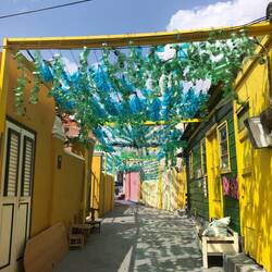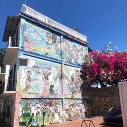 Ich durfte auch erleben, wie die Brücke, die zwei Stadtteile von Willemstad verbindet, für größere Schiffe auf die „Seite“ gefahren wurde. Als die Brücke wieder begehbar war, bin ich auf die andere Seite. Auch hier wieder einfach quer Beet durch die Straßen geschlendert. Teilweise schöne Straßenkunst und Graffitis gesehen. Irgendwann hatte ich keine Lust mehr und bin in das Café von heute Vormittag auf ein Stück Kuchen und nen Kaffee gegangen. Zurück im Hostel hab ich’s mir dann auf der Terrasse bequem gemacht und meine Unterkunft für Panama City gebucht. Später kamen dann Nadja (auch gebürtig aus Deutschland) und Marco und wir haben den morgigen Tag geplant. Wir fahren mit dem Bus zu einem der schönsten Strände und machen dann vielleicht auch noch Strandhopping. Ich hoffe, dass wir einen Strand finden, der gut zum Schnorcheln ist.