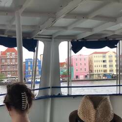 Nach dem Duschen hab ich mich auf den Weg zum Frühstücken gemacht. Gleich um die Ecke wurde ich fündig. Endlich mal wieder richtigen Kaffee und auch eine kleine Auswahl an Frühstück. Ich hab mich für ein Spiegelei mit Serrano Schinken, Avocado und Semmel entschieden. Zum Abschluss gab’s dann noch einen frisch gepressten Orangensaft. War das lecker!! nach dem Frühstück bin ich kurz ins Hostel zurück und hab meinen Zimmer-Kollegen getroffen. Mit Marco, ein gebürtiger Franke, ratschte ich ein bisschen länger, bevor ich mich auf Erkundungstour durch Willemstad machte. Ich bin einfach drauf losgelaufen, ohne genau zu wissen, was es anzuschauen gibt. Natürlich lagen auch wieder Kreuzfahrtschiffe im Hafen. Die Stadt war ziemlich voll.
