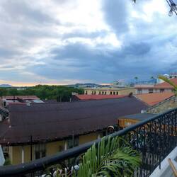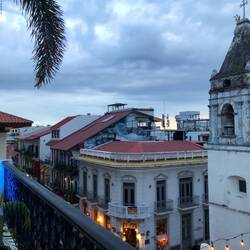 Ich bin dann weiter durch die Straßen, bis ich einen leichten Hunger verspürte. Im Reiseführer stand ein Lokal, das für nen kleinen Happen ganz gut sein soll. Da hab ich mir dann mein erstes Bier in Panama und Empanadas bestellt. Danach kurz ins Hotel zurück, um später nochmals um die Häuser zu ziehen. Da aber eine Demo oder irgendeine politische Veranstaltung am Plaza Ana war, über diesen Platz muss ich gehen, um in die Altstadt zu gelangen, war ich mir nicht sicher, ob mir das ohne großen Umweg auch gelingt. Ich hatte Glück und ich konnte meinen Weg ohne Probleme nehmen. Ich bin in eine Rooftop-Bar, die am Nachmittag noch geschlossen hatte. Dort bestellte ich mir eine Kleinigkeit zum Essen und ein Bier. Mit einer tollen Aussicht schmeckte beides nochmal besser. Gerade als ich zahlen wollte, gab’s ne Runde Corona aufs Haus. Da ich keinen Kaffee bestellen konnte, da die Bar keinen auf der Karte hat, gönnte ich mir noch ein Bier. Nach dem leider nicht so tollen Sonnenuntergang, es war ziemlich bewölkt, bin ich dann nach Hause. Der Abend und auch der Heimweg an den Kneipen und Restaurants vorbei, hat Lust auf mehr gemacht…