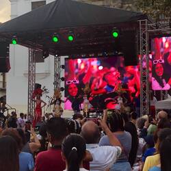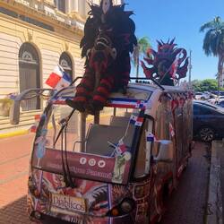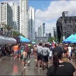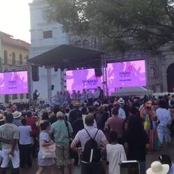 Ich wollte zuerst nochmal mit meinem Touriticket Bus fahren, aber es hätte nichts mehr gegeben, was ich noch unbedingt sehen will. Wir sind dann mit Uber zurück nach Casco gefahren und zum Essen gegangen. Danach kurz zurück ins Hostel, fertig gemacht fürn Karneval, alle Sachen wasserdicht verpackt, da es sehr nass werden kann. Dann los Richtung Cinta Costera. Das Einlassprozedere kannte ich ja schon. Aber dass das nochmal getoppt werden kann, dachte ich nicht. Am Eingang angekommen waren zwei Schlangen. Eine für die Damen, eine für Herren. Uns wurde gesagt, wir brauchen uns dort nicht anstellen, wir können rechts durchgehen. Da stand nur eine Dame an. Nachdem wir zum ersten Mal unsere Ausweise vorgezeigt haben, diese auch fotografiert wurden, mussten wir die Pässe erneut vorzeigen/fotografieren lassen und dann ging das warten los. Ich fragte, warum wir den Ausweis zweimal vorzeigen müssen. Antwort: es sind unterschiedliche Behörden. Gerade eben werden wir von der Migration kontrolliert. Viele Europäer/innen wurden schnell durchgelassen. Wir warteten ca. 30 Minuten. Dann wollten sie unsere Rückflugtickets sehen. Ich hatte meins natürlich nicht dabei. Ich hab dann das Foto von meinem Einreisestempel gezeigt und durfte zum Sicherheitscheck. Auch hier nochmal Ausweis zeigen und sich abtasten lassen. Endlich waren wir drin. Jetzt hatten wir keine Stunde mehr, um uns das Spektakel anzuschauen. Um 15:00 Uhr sollte das Culecos, nass spritzen mit Feuerwehrschläuchen, vorbei sein. Als wir zu den beiden Bühnen wollten, die nächste Sicherheitskontrolle. Ausweis zeigen, abtasten lassen (meine Beine wurden von ihm getreten, da ich die anscheinend nicht breitbeinig genug da stand, war gestern übrigens auch der Fall) und hoffen, dass man reinkommt. Mein Typ schaute sich die Kopie an, dann mich, dann die Kopie, schaute verzweifelt seine Kollegen an. Nach ner Minute gab er mir die Kopie zurück und ich durfte rein. Jetzt waren wir also da… viel gibt es gar nicht zu berichten. Laute Musik, kaum bzw. keine verkleideten/maskierten Leute, viel Wasser. Der Spaß hier ist, sich nass spritzen zu lassen. Das war’s dann auch schon. Ich hab mir ein Bier gekauft und wir sind dann in dem eingezäunten Bereich rumgelaufen. Punkt 15:00 Uhr war’s dann auch vorbei. Bevor wir ins Hostel zurück sind, haben wir noch einen kleinen Abstecher zum Fischmarkt gemacht. Im Hostel hab wir uns nicht lange aufgehalten und sind recht schnell weiter auf den Parque de la Catedral, hier sollte auch was stattfinden. Als wir ankamen war so eine Art Tanzstunde und im Anschluss wurden die 4 Reinas vorgestellt. Das war ziemlich langweilig. Auf einen anderen Platz sollte auch eine Veranstaltung sein. Da war aber nix. Deshalb sind wir dann ins CasaCasco auf die Dachterrasse im 5. Stock oder so. Bisschen Sonnenuntergang schauen und ein kühles Getränk zu sich nehmen.