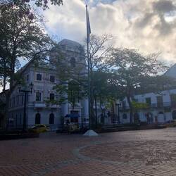 Ich bin zum Frühstücken im Coca Cola Café gleich um die Ecke gelandet. Da gab’s einen Café negro und süße Pancakes mit einem Spiegelei. Die Preise sind auch wieder in Ordnung. Nachm Frühstück hab ich meine Sightseeingtour durch Casco Viejo gestartet. Mein Taxifahrer gestern meinte, dass es ähnlich wie Cartagena in Kolumbien ist. Ich finde, dass Casco vielleicht ein bisschen Ähnlichkeit hat, aber Cartagena ist von den Straßen viel enger und auch viel bunter. Trotzdem gefällt mir der Stadtteil sehr gut. Ich bin einfach planlos umhergelaufen. Als ich an einem Stadtstrand stand, kam ein Amerikaner zu mir und wir haben uns ein bisschen unterhalten. Er hatte 4 Jahre deutsch studiert. Als ich weiterging, bin ich an seiner Gruppe vorbeigekommen und er sagte zu seinen Begleitern, dass ich aus Deutschland sei. Sein Freund fragte mich aus welcher Stadt und als ich geantwortet hatte, stimmte er das Hofbräuhaus-Lied an…