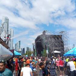 Später wollten wir dann nochmal zur Cinta Costera zum Karneval. Im Hostel geduscht, noch ein Bier im Gemeinschaftsbereich getrunken und dann, die Gruppe wurde immer größer, los zum Karneval. Aufm Weg dorthin habe ich Dave und Nina getroffen. Kurzer Smalltalk und weiter. Auf einmal war neben mir ein komischer Typ aus Deutschland. Ich glaub, der war besoffen und/oder voll mit Drogen. Der hat mich bis zum Eingang nicht mehr in Ruhe gelassen. Am Eingang sagte er dann, dass er ein Messer dabei hat und ihm gesagt wurde, er darf das mit reinnehmen. Und was er noch alles in seinem Rucksack hatte… ich weiß es nicht!