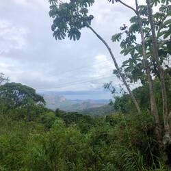 Da war die Stunde schon fast rum. Ich dachte mir, um die nächste Kurve lauf ich noch, dann dreh ich um. Aber natürlich bin ich weiter. Schließlich waren es bis zum eingezeichneten Aussichtspunkt nur noch 1,5 km. Nach diesen 1500 Metern war aber kein Mirador. Trotz Suche, es gab keinen. Auch von diesem „markierten“ Punkt war die Aussicht nicht besonders. Ich bin noch ein kleines Stück weiter und drehte dann um. Den gleichen Weg ging es nun zurück. Zum Glück war es heute den ganzen Tag, mehr oder weniger, bewölkt. Auf der Strecke gab es kaum Schatten. Nach gut drei Stunden war ich dann wieder im Hostel. Nachm Duschen war erholen angesagt, leider nur im Zimmer, da der Chillbereich von der Kanadierin besetzt war. Ich hatte auf Smalltalk keine Lust. Zum Abendessen gab es dann die Reste von gestern und ich bin recht früh ins Bett. Bevor ich schlafe, muss ich noch überlegen, wie ich meine nächste Tage verbringe. Fahr ich weiter nach Boquete oder an die Pazifikküste, bleibe ich noch länger in Santa Fe…