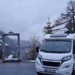 Erste Übernachtung am Fuße der Zugspitze. Es schneit und ist diesig- deshalb bleibt uns zumindest heute Abend der Blick auf die Zugspitze verwehrt 🤷🏽♂️