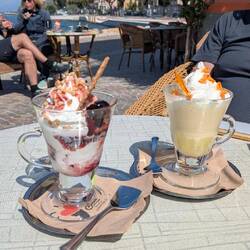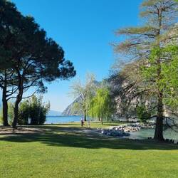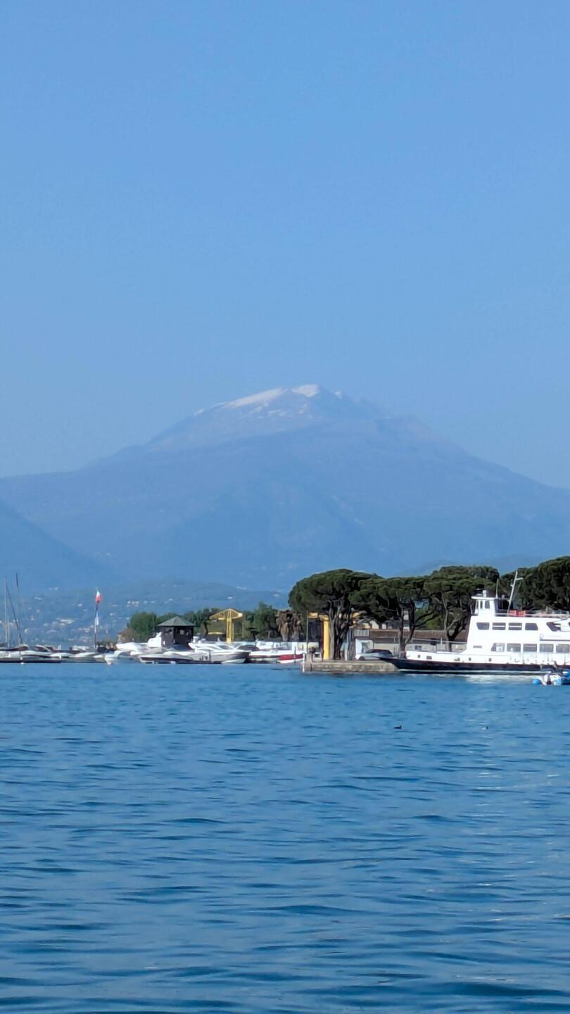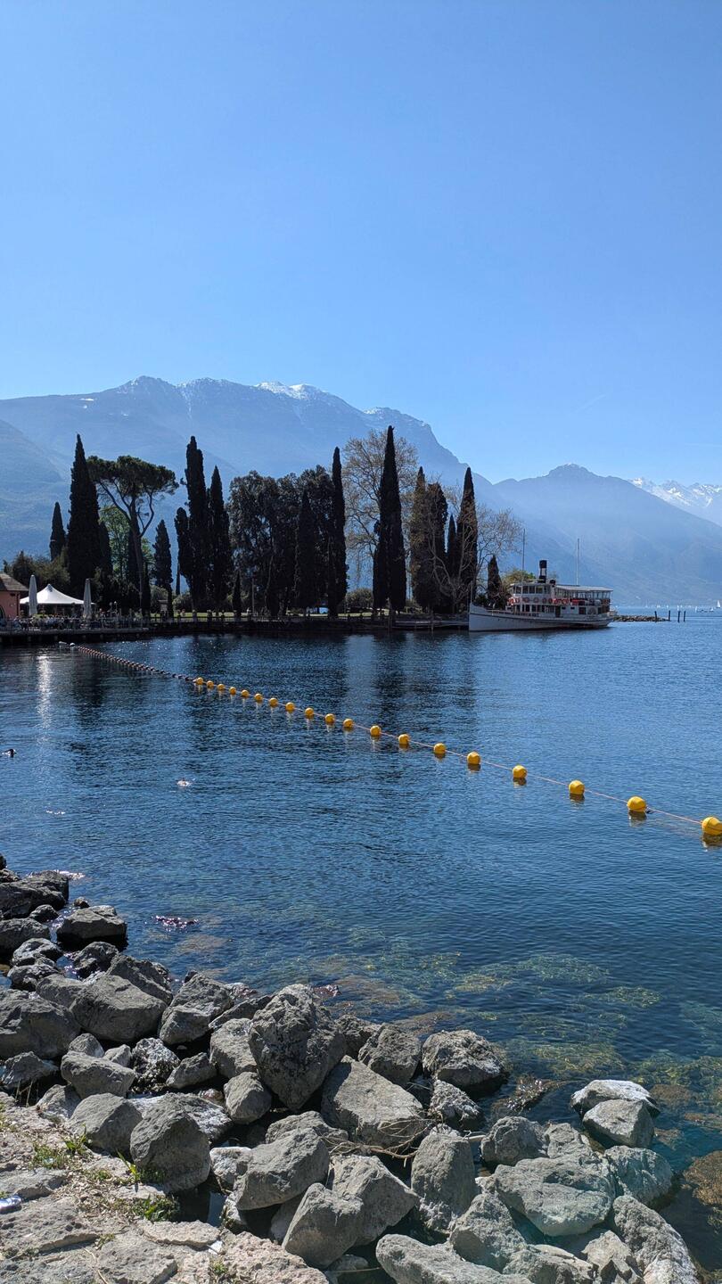 Heute radeln wir nochmal durch die Olivenhaine nach Malcesine. Stadtbummel und danach Abhängen am Paragleiter Landesplatz bei schöner Musik und leckerem Getränk. 😊