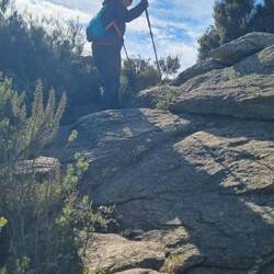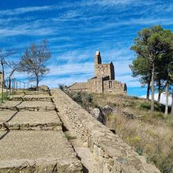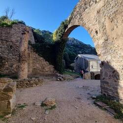 Geplant war ein kleiner Rundwanderwege über ein altes Castell oben auf dem Berg zum Monestir Sant Pere de Rodes. Wir gerieten in eine Wildschwein-Jagd, aber glücklicherweise wurde bei unserer Ankunft gerade der Wanderweg! wieder frei gegeben. Den Weg musste man suchen und der Wind nahm immer mehr zu. Vor der letzten Gradpassage musste Frau K. dann doch aufgeben.