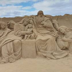 Heute ist schon der letzte Tag. Alex wünscht sich einen Besuch der Krippe aus Sand. Internationale Künstler haben am Strand Las Canteras in Las Palmas christliche Motive aus Sand geformt. DieLäs mer