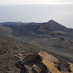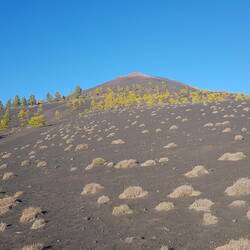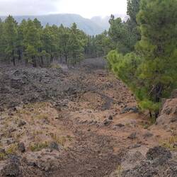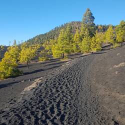 Ich parke am centro de Visitantes in Los Canarios und laufe zunächst um den Kraterrand des Volcán San Antonio, der zuletzt vor rund 300 Jahren ausbrach und in dessen Kegel jetzt grüne KiefernLäs mer