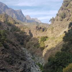 Traumhafte Wanderung durch blühende Mandelbäume, lichte Pinienwälder, tiefe Täler sowie über Gipfel und Grate bei angenehmen Temperaturen aber wegen Calima auch leider bei schlechter Sicht