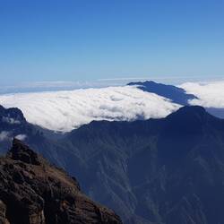 Bei bestem Wetter auf dem höchsten Berg der Insel zu sein und von 2400 Metern über dem Meer den Wolken dabei zuzuschauen, wie sie über die Caldera schwappen, das war schon eines der HighlightsLäs mer
