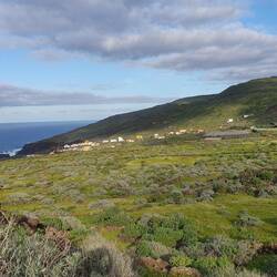 Heute ist für El Hierro sehr untypisches Wetter: Es schauert heftig und ist ungemütlich windig, also flüchte ich aus dem Norden in den Süden der Insel. Auf der Fahrt durch die Berge fällt dasLeia mais