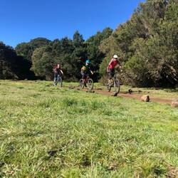Ich habe bei Ralf von Mountainbike Active eine geführte MTB-Tour gebucht. Zunächst geht es mit dem Auto in die Berge. Anschließend führen uns Ralf und sein Sohn zunächst über schöneLeia mais