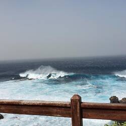Ich parke Inge an der Straße nach Valverde und wandere über Echedo zum Charco Manso. Der Himmel ist immer noch gelb vom Saharasand. Charco Manso bietet mir dann die spektakulärste Brandung, die ichLeia mais