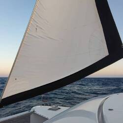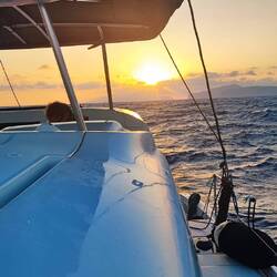 Nach einem erfrischenden Bad und einem wunderschönen Sonnenaufgang frühstücken wir gemütlich unter Segeln.