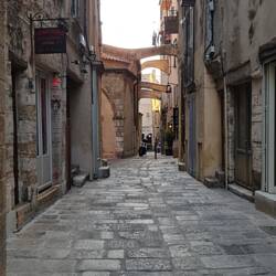 Bonifacio ist eindeutig dass Highlight dieser kleinen Segelreise! Die Altstadt thront auf den Sandsteinfelsen hoch über dem Meer. Die Felsen sind im unteren Bereich so stark erodiert, dass die Häuser nur noch auf dem überhängenden Fels stehen. Es gibt diverse Restaurants direkt am Wasser, doch wir schlendern lieber durch die engen Gassen der Altstadt und kehren in dem schönen Restaurant Le Bo (Visitenkarte: Siehe Foto) ein. Wir sitzen gemütlich unterm Heizpilz und werden sehr freundlich und prompt bedient. Ein Kellner spricht sogar Deutsch und erklärt uns das Menu und die Weinkarte. Die Speisen sind schmackhaft, preislich ok und wir werden auch satt.