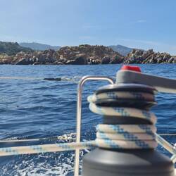 Da der Wind noch weiter zunehmen soll, entscheiden die Skipper um 12 Uhr um: Neues Ziel ist die Bucht Cala Portese im Südosten von Caprera, der ersten Insel des Maddalena Archipels.