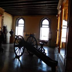 Von den Fenstern der Waffensammlung aus hatte man einen tollen Blick auf die Lagune Bacino San Marco und die Insel San Giorgio Maggiore mit ihrer Kirche.